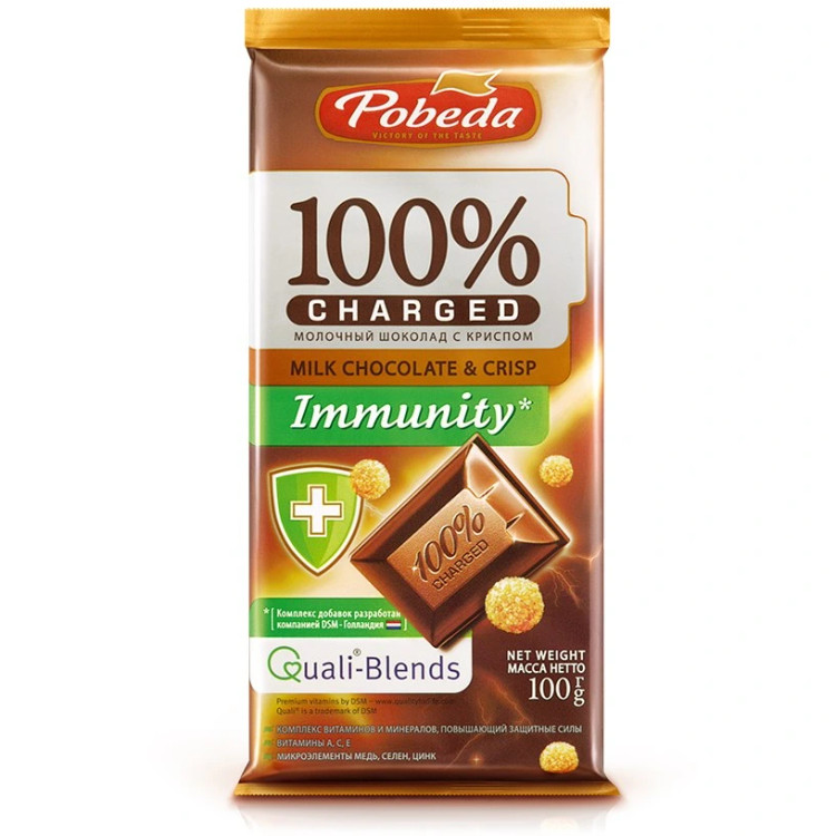 این شکلات با استفاده از فرمولاسیون Quali-Blends شرکت DSM هلند تولید شده است و حاوی ویتامینهای A، C، E و همچنین مواد معدنی مانند مس، سلنیوم و روی است.