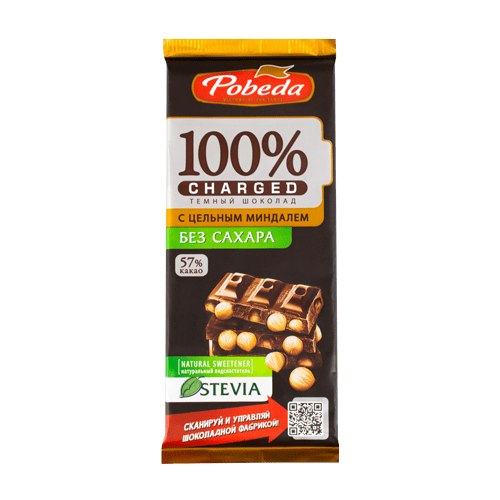 شکلات شیری حاوی استویا بدون قند با فندق کامل 57 درصد کاکائو پوبدا Pobeda یک محصول غذایی تخصصی، منبع اضافی فیبر غذایی برای افرادی که وزن بدن را کنترل می کنند. این محصول 30 درصد از نیاز روزانه یک فرد بزرگسال به فیبر غذایی را شامل می شود. با استفاده از شیرین کننده استویا یک شکلات بدون شکر و رژیمی را تولید و به دوستداران شکلات عرضه نمود. در شکلات شیری حاوی استویا 57 درصد کاکائو Pobeda خوش طعم عصاره طبیعی گیاه استویا جایگزین شکر شده است. گیاه استویا محصولی کاملا طبیعی است که به طور مستقیم از دل طبیعت و گیاهان گرفته شده است. امروزه به طور وسیعی در صنایع محصولات قندی شیرینی و شکلات، نوشابه های گازدار و سایر صنایعی که در پروسه خود به مقادیر زیاد از مواد قندی استفاده می کرده اند، شیرین کننده استویا جایگزین شکر و قند کالری زا شده است. استویا می تواند یک جایگزین مناسب برای قند و شکر باشد و به دلیل اینکه فاقد کالری است، می تواند برای افرادی که رژیم های کاهش وزن را دنبال می کنند بسیار مفید باشد. این گیاه باعث کاهش چاقی و فشار خون می شود. استویا به دلیل اینکه فاقد کالری می باشد نقش چاق کنندگی ندارد و از این رو می توان با مصرف آن از چاق شدن پیشگیری کرد. همچنین موجب پیشگیری از دیابت می شود.